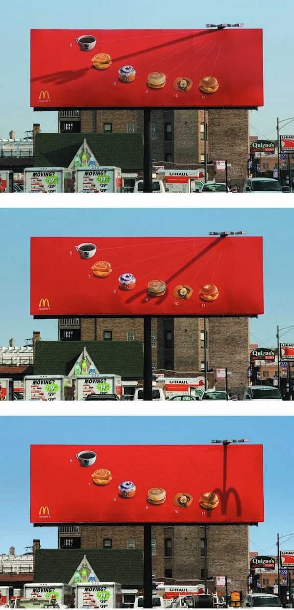 In Chicago, McDonald’s has put up a clever new billboard that uses an ingenious shadow fork to tell you when to eat at each hour of the morning.