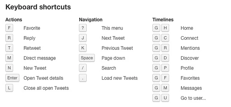New Twitter keyboard shortcuts
